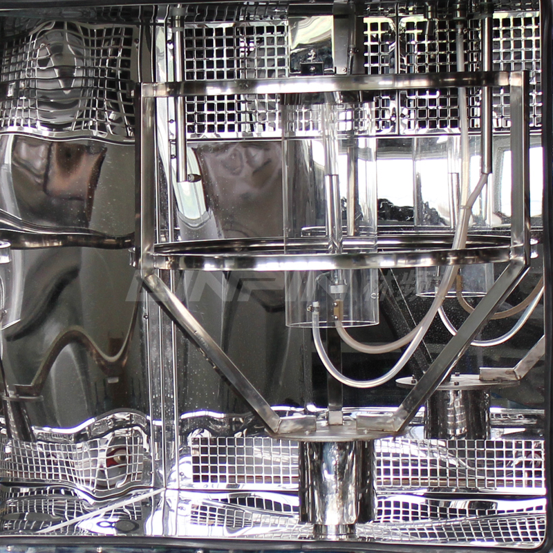 標(biāo)準(zhǔn)配置:樣品架2層、配有凝結(jié)水接水盤(pán),并排出箱外